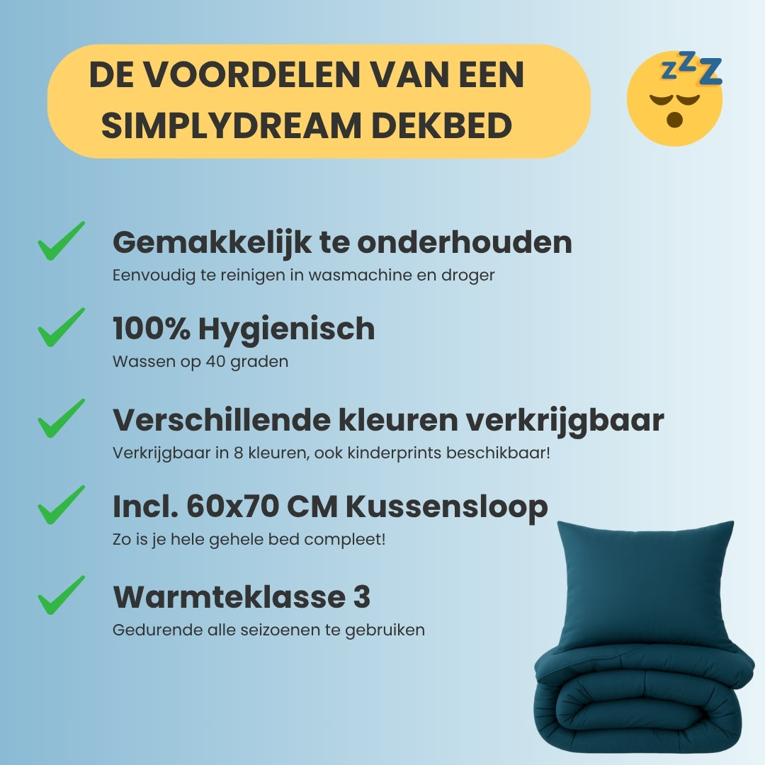 Dekbed Zonder Overtrek - Petrol Blauw - Incl. Kussensloop - 140x200 of 200x200