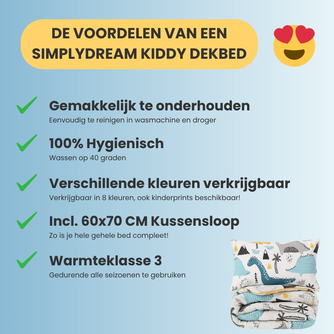 Kiddy Dekbed Zonder Overtrek - Dino - Incl. Kussensloop - 140x200